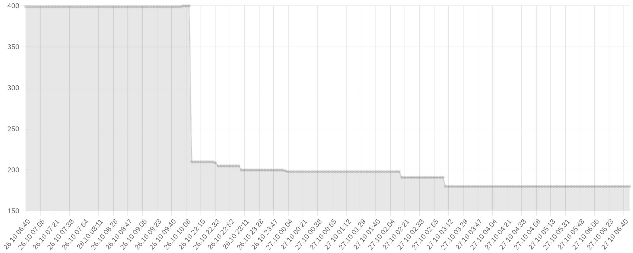 Extract: Fallen Dynasty Plate Armor Drop -27% Now 150 Lucent Region 30003 at 2025-10-27 00:14 Chart (24h)
